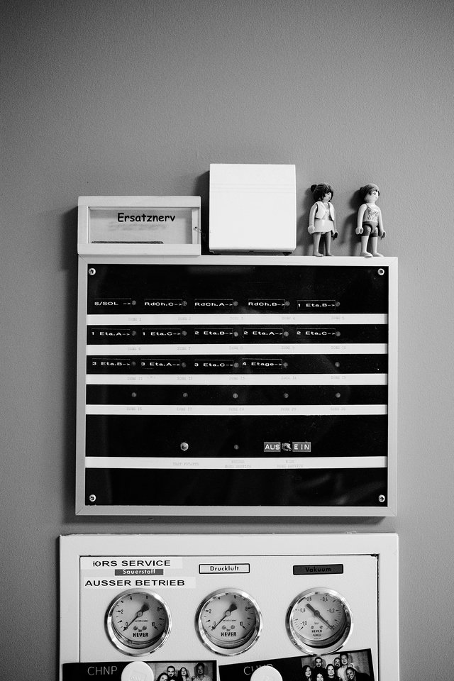 Die Fenster in der Orangerie Drei sind alle mit einem Schlüssel abgeschlossen. Lediglich die kleinen oberen Fenster kann man kippen. Im Gemeinschaftsraum sind fast alle Gegenstände an den Boden geschraubt, um zu vermeiden, dass Schlimmeres passiert, falls es eine Krise gibt. Dass jemand zum Beispiel den Kicker umwirft, wie das kürzlich der Fall war. Das Personal, das hier arbeitet, ist mit einem Alarmsystem ausgestattet. Wird Alarm ausgelöst, kommt Unterstützung aus den anderen Stockwerken des CHNP gelaufen. Worst case scenario. Meist wird durch Gespräche deeskaliert.